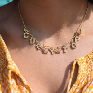 Tags: black owned jewelry, black owned shops, chain necklace, ethical gift, ethical jewelry, festival jewelry, Gift For Her, monogram necklace, name necklace, Shiori commercial, Shiori necklace, statement necklace, word necklace