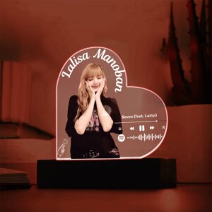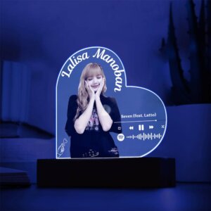 Transform your space with this custom LED Music Plaque, designed to celebrate your favorite music, memories, and loved ones. Featuring a sleek acrylic design, this plaque showcases your chosen song, album cover, or photo with vibrant LED lighting that adds a magical glow to any room. Perfect for fans of K-Pop, sentimental gifts, or home decor enthusiasts, this plaque is a unique way to connect with the moments and music you cherish most.